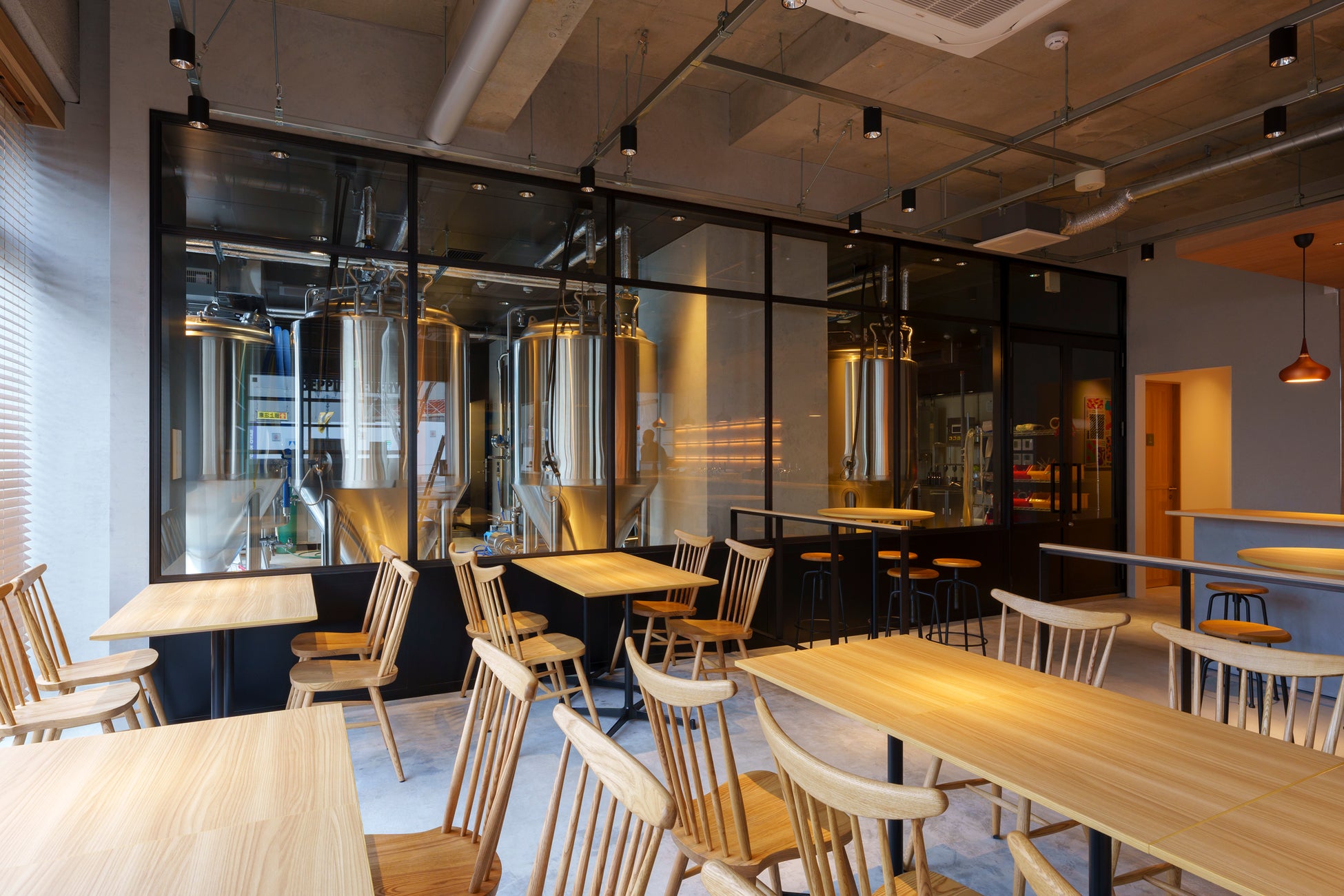 店内は落ち着きと、本格的なビール製造所の雰囲気を兼ね備えた洗練された和モダンな雰囲気となっております。ここでしか味わえない一番の魅力は、できたてのビールとお食事を楽しみながら横目に醸造所を見る事が出来るところです。