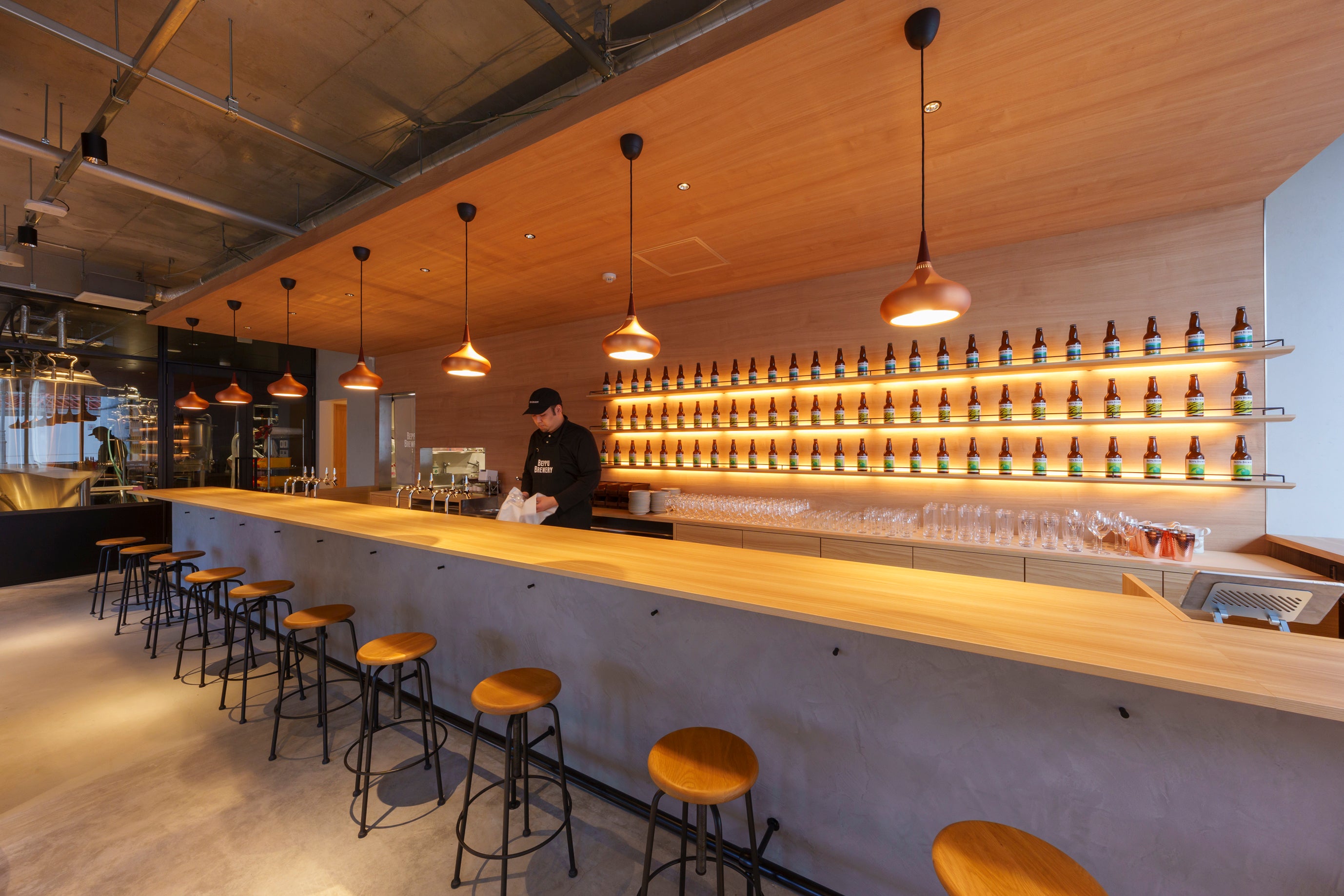カウンター席やテーブル席をご用意しているためおひとり様でも団体でも、様々な利用シーンに合わせてご利用頂けます。入口付近には物販コーナーも併設しており、今後完成したビールを中心にお土産品を販売していく予定です。