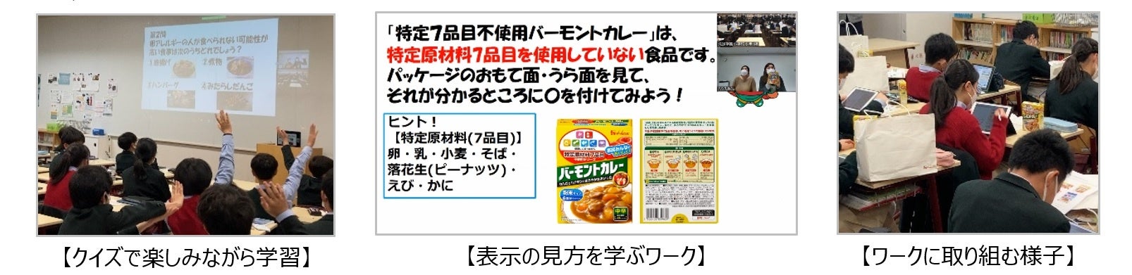 2. ハウス食品の食物アレルギー配慮商品に触れ、表示の工夫や見方を学習