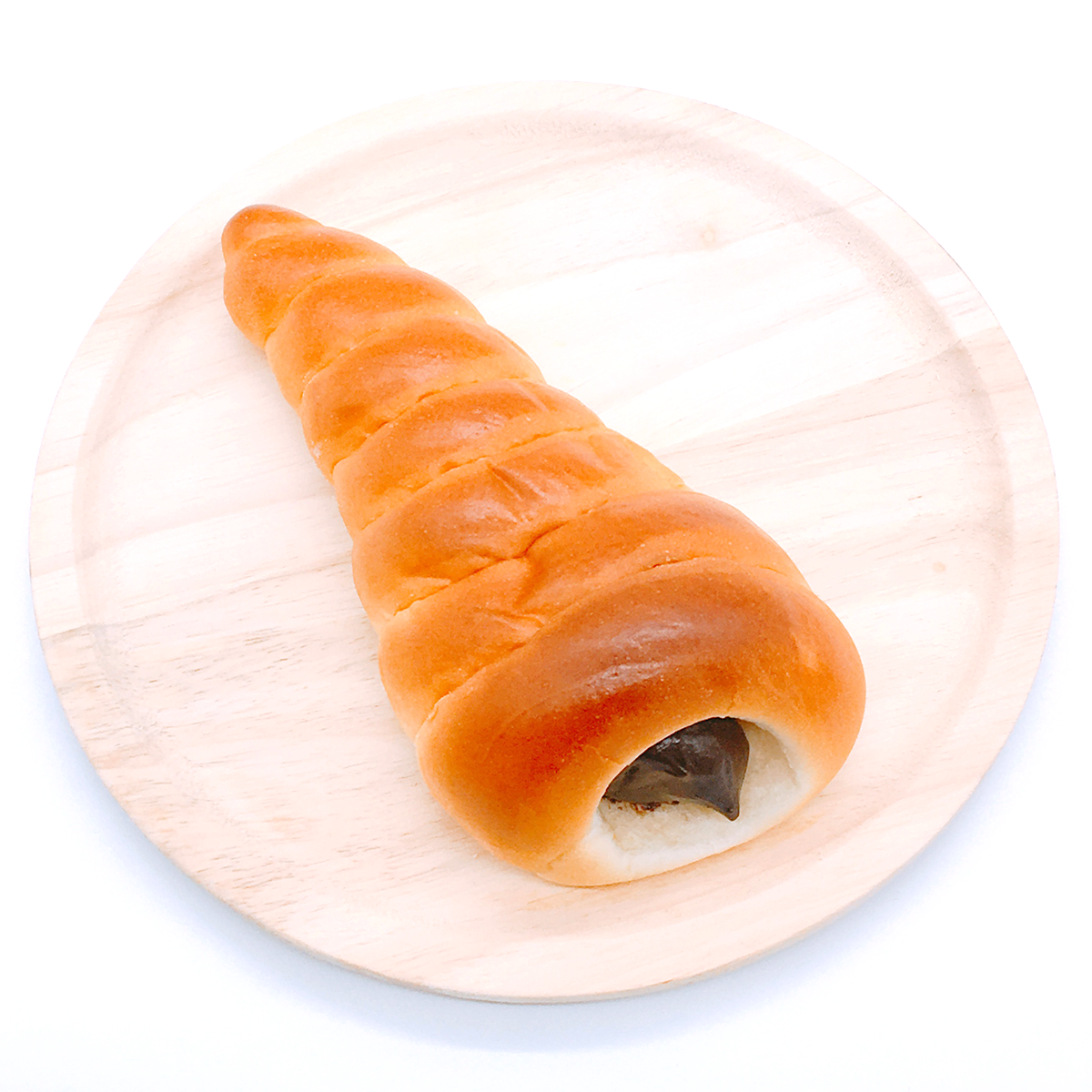 巻貝の形をした昔ながらの手作りパン。中にチョコレートクリームを入れました。