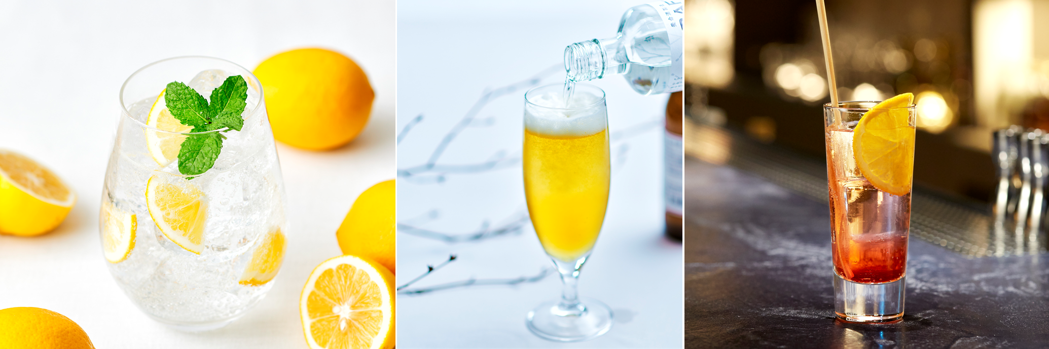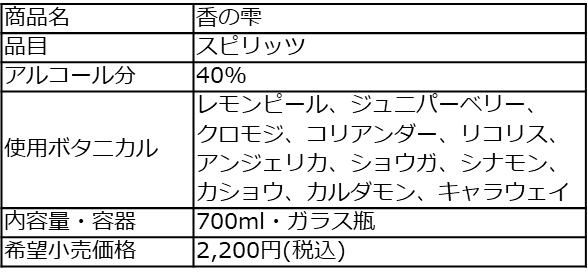 ロックはもちろん、炭酸割りやビアアレンジ等のカクテルにしても、クラフトジン 香の雫の香味の個性とボリュームのある味わいをしっかりと感じていただけます。