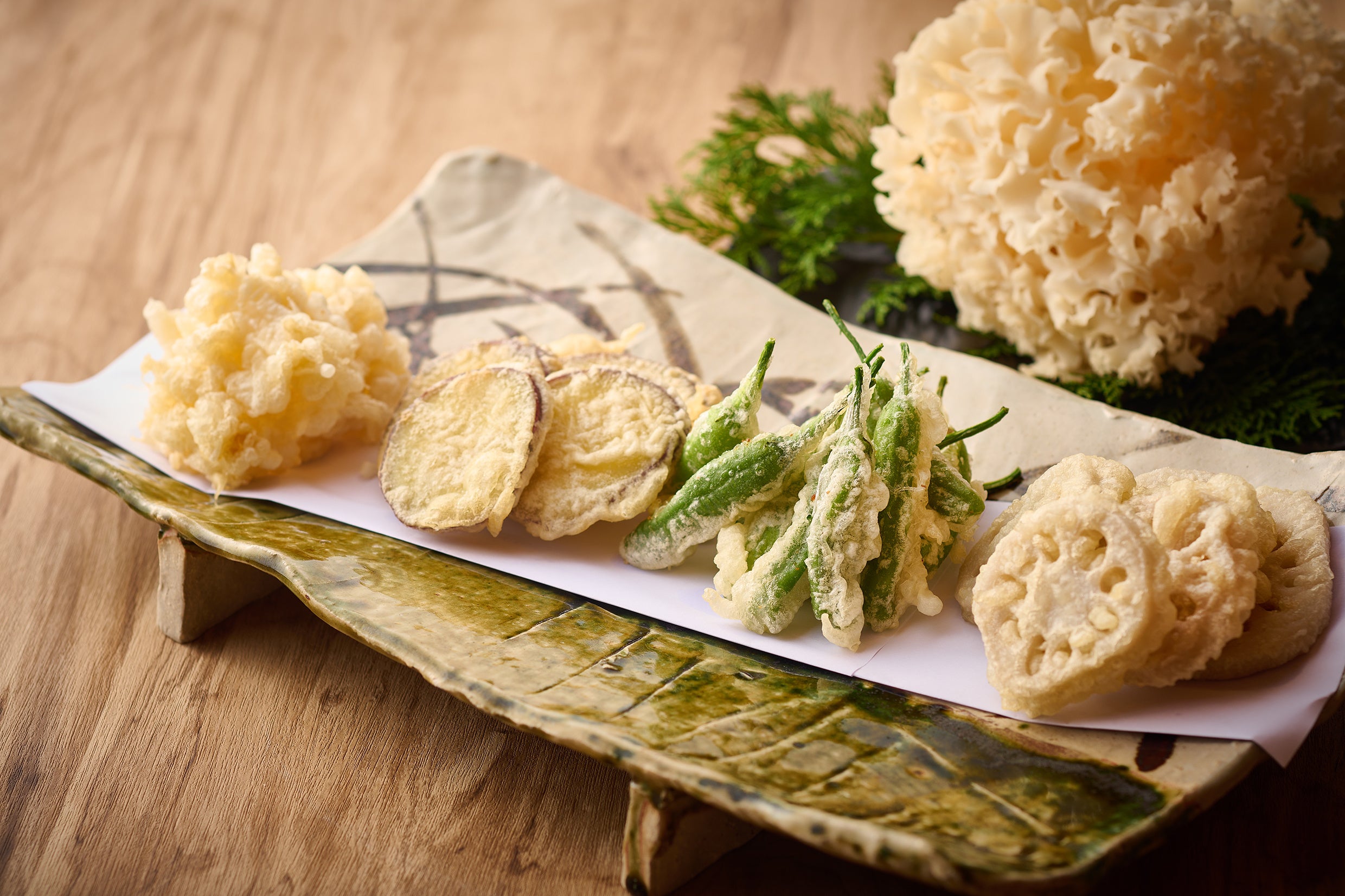 福井県の九頭竜まいたけや石川県のさつまいも五郎島金時などを天ぷらにしてご提供。