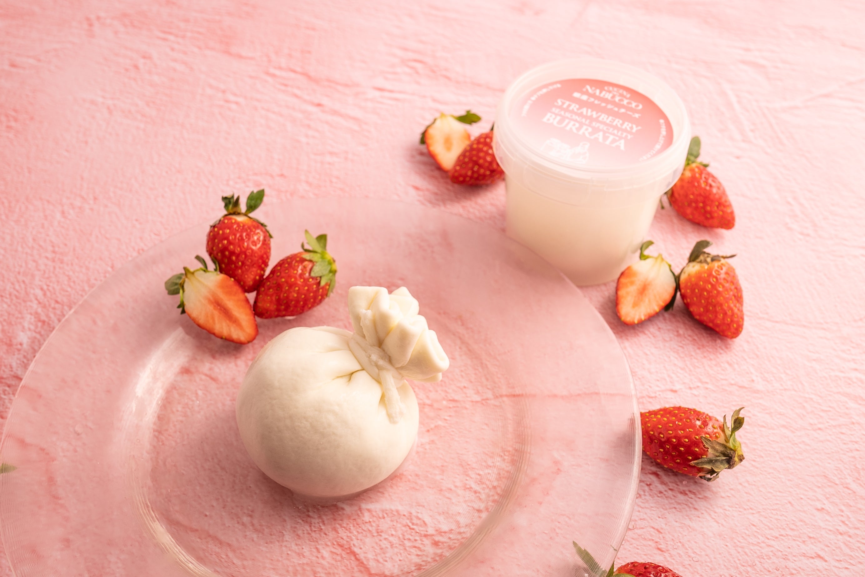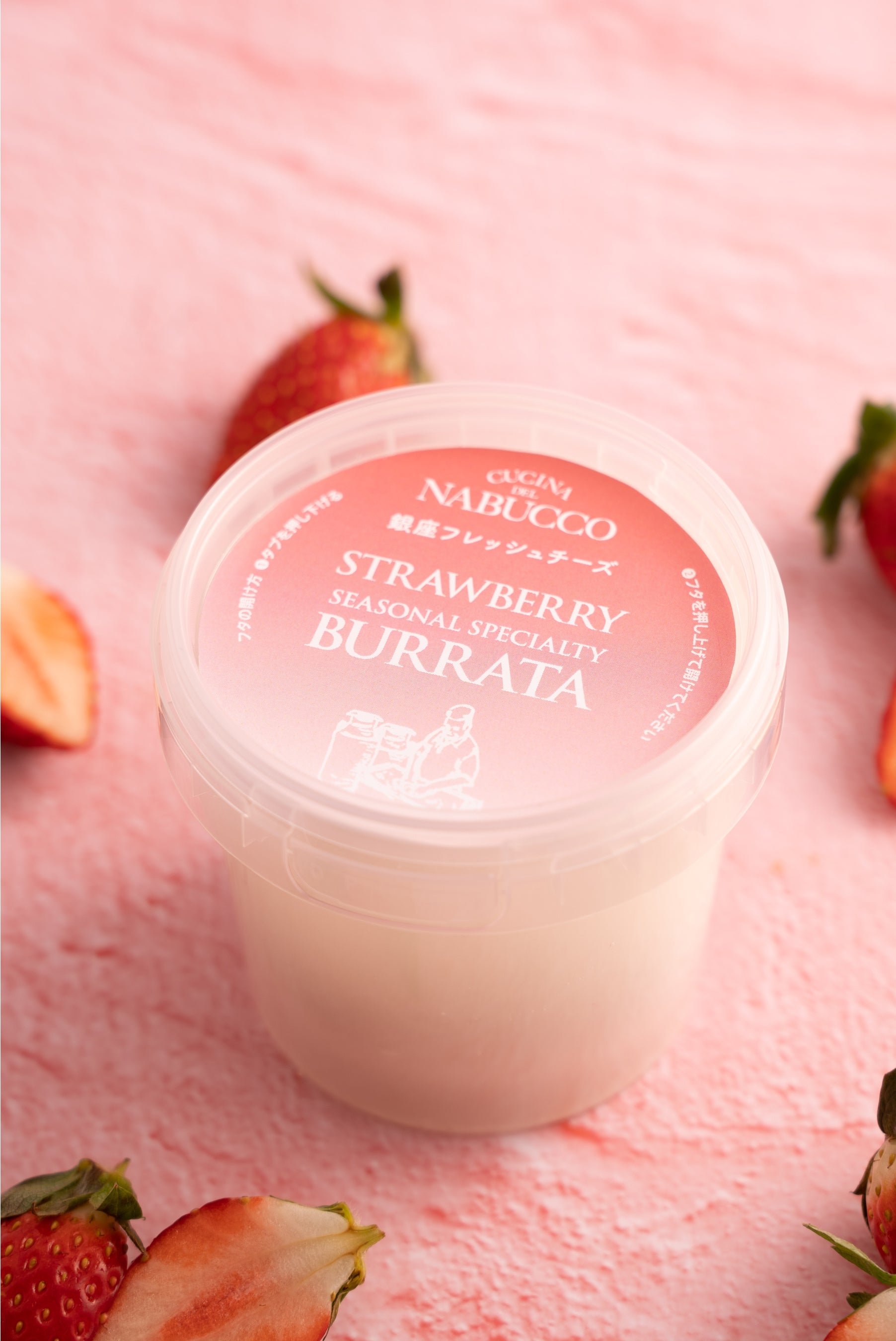 冬の果物と言ったら一番最初に思いつく苺を使って、cucina del NABUCCOだけにしか表現できない特別なブッラータが完成しました。レストランでは召し上がって頂けることはもちろんオンラインストアでも販売致します。