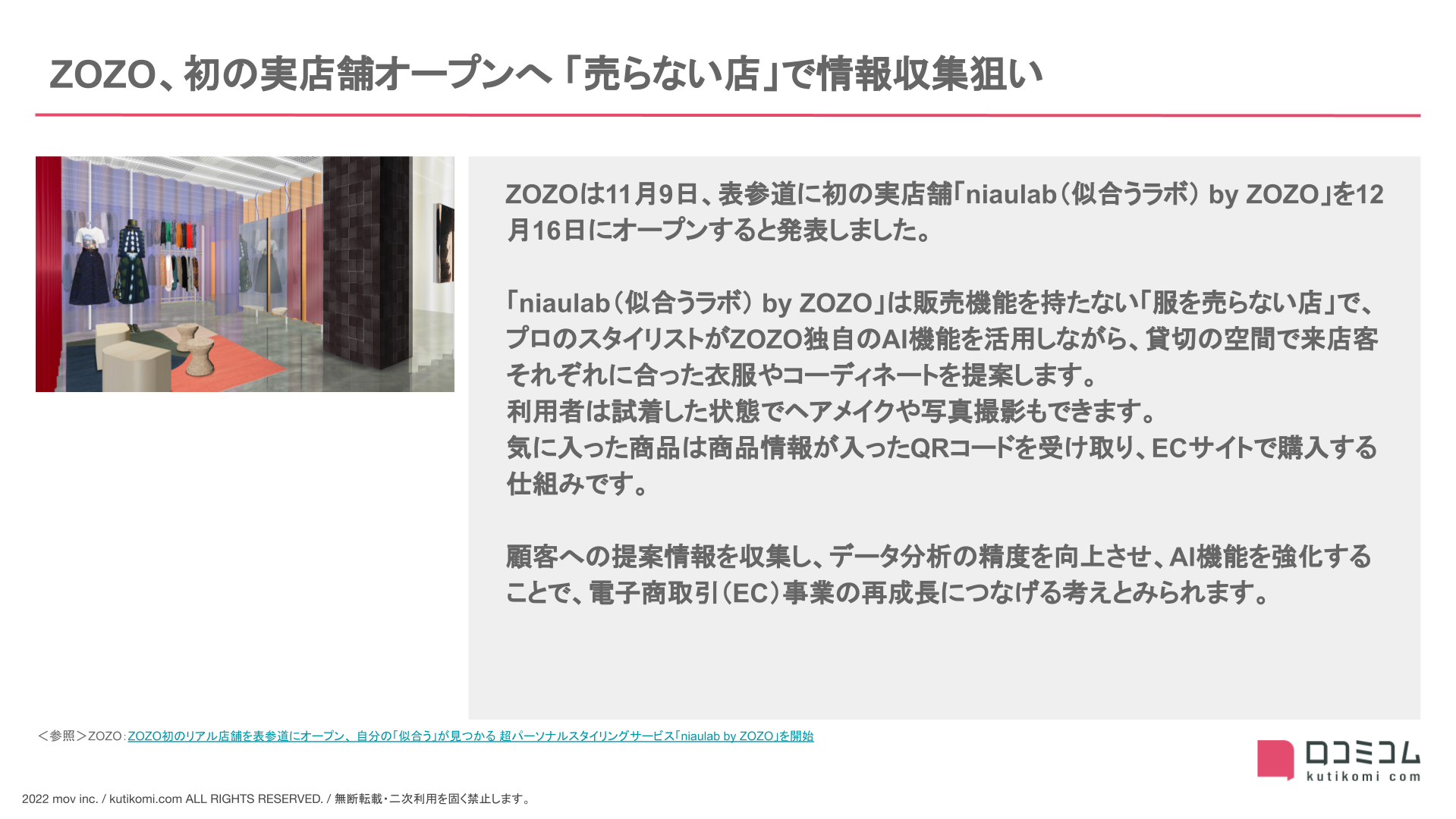 - ZOZO、初の実店舗オープンへ 「売らない店」で情報収集狙い