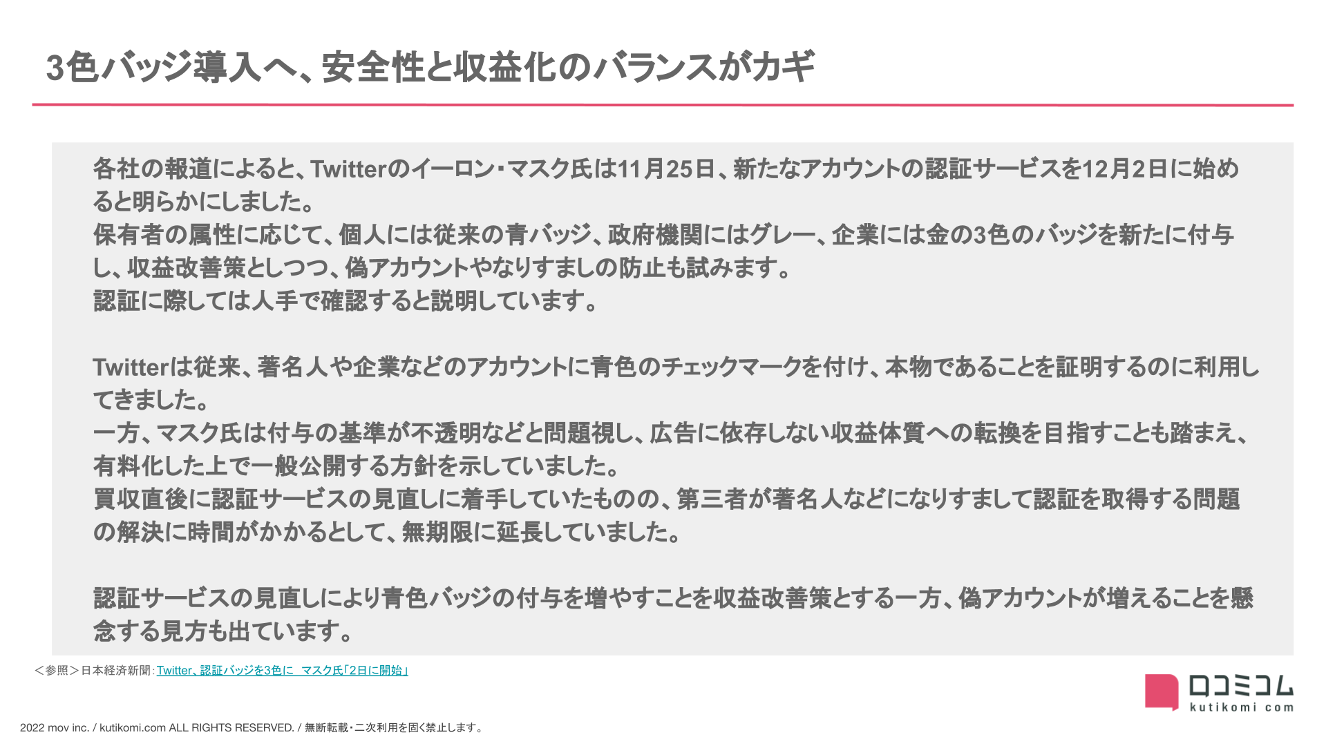 - 3色バッジ導入へ、安全性と収益化のバランスがカギ:Twitter