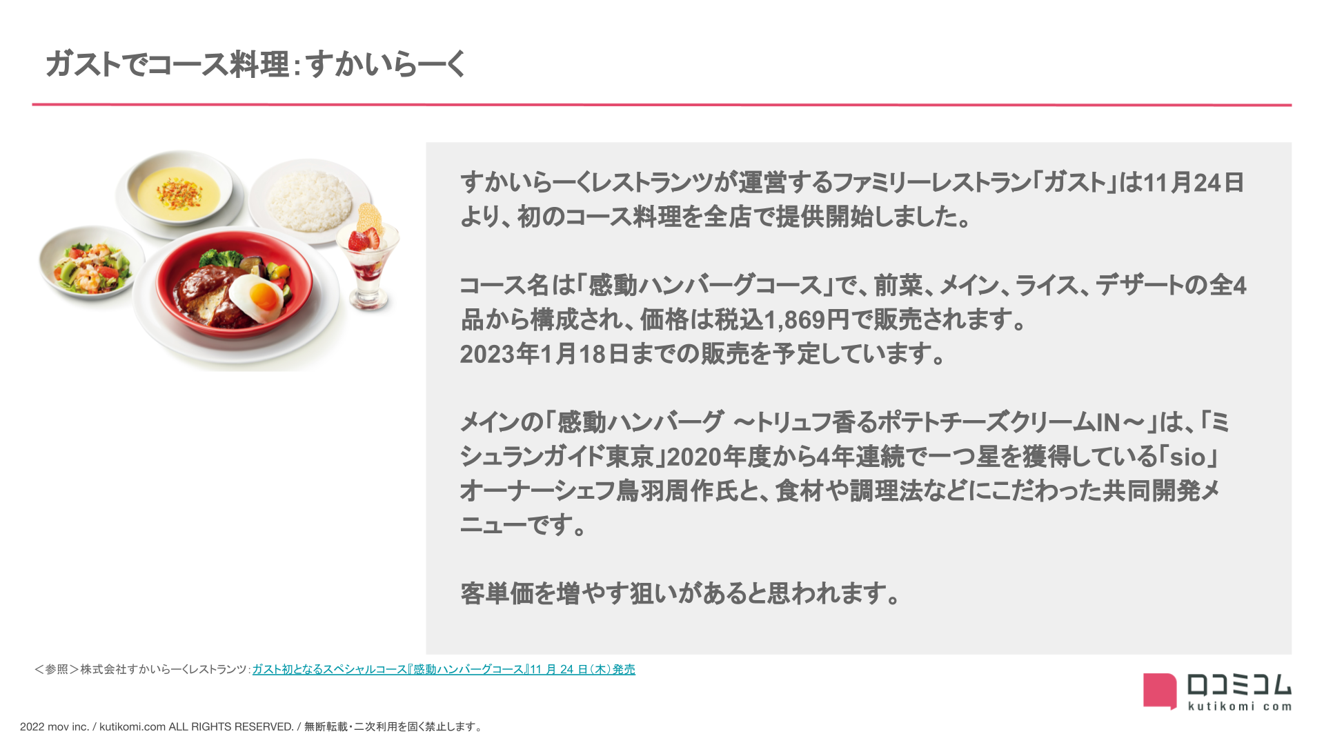 ■【飲食業界まとめ】ガストにコース料理が登場 / 居酒屋の売上1.5倍に、回復の兆し