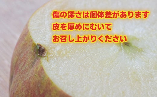 今年6月に県内で発生したひょう被害の影響で、傷や凹みがありますが、ちょっと皮を厚めに剥けば、通常は高単価で販売されているりんごと遜色ない味わいです。