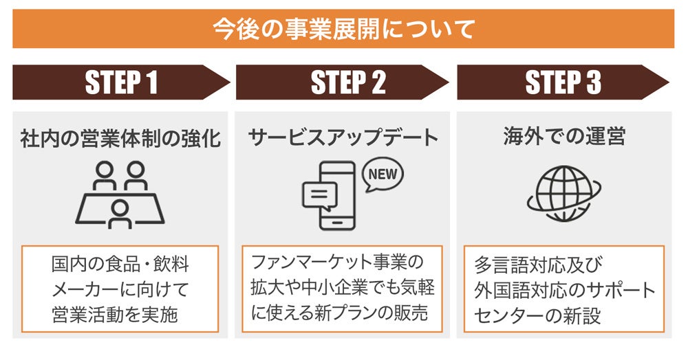 今後は、機能追加で予算の少ない中小メーカーでも導入しやすい環境を整えていきます。また、サービス基盤を安定させ、日本食の魅力を海外ファンに向けて発信することで企業として成長してまいります。