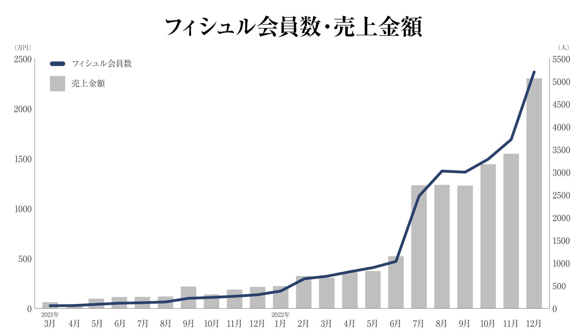 お魚のサブスクサービス「フィシュル」は、消費者のフードロス削減やSDGsへの関心の高まりを背景に業績が急拡大しています。特に2022年に入ってからは順調に会員を獲得し年内に会員数5,000人達成。2023年12月までにフィシュル会員数1万人と5億の売り上げ目標を見込んでいます。