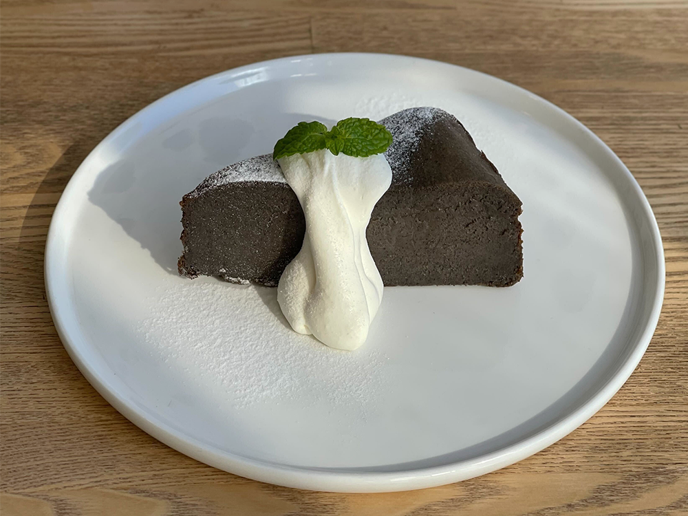 黒ごまをたっぷりと使用し、しっとりとした食感に焼き上げた濃厚チーズケーキ。香ばしく、程よい酸味が特徴です。自家製のクリームと合わせてお召し上がりくださいませ!