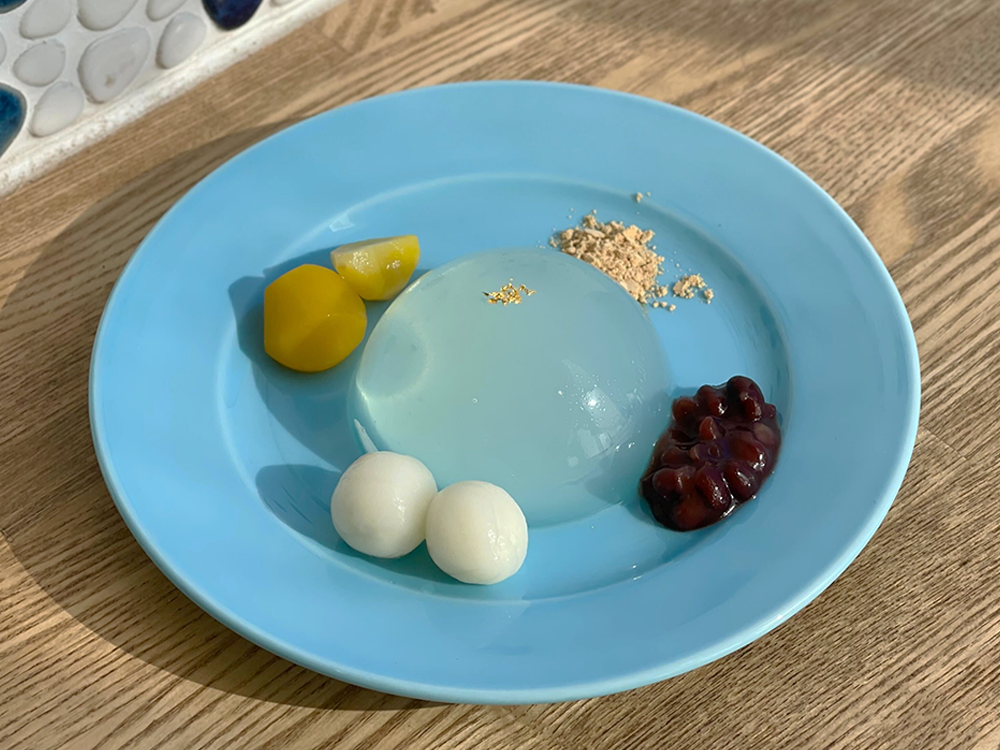 ぷるぷるでやわらかな水餅ゼリーに、黒蜜や栗の甘露煮、白玉など、和の素材と合わせてお楽しみください!