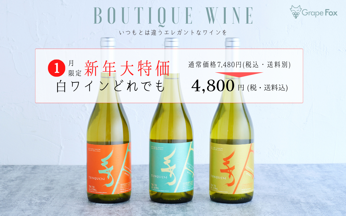 GrapeFoxはそんな1月にぴったりのエレガントな白ワインを3種類ご用意し、特別価格にてご提供いたします。
