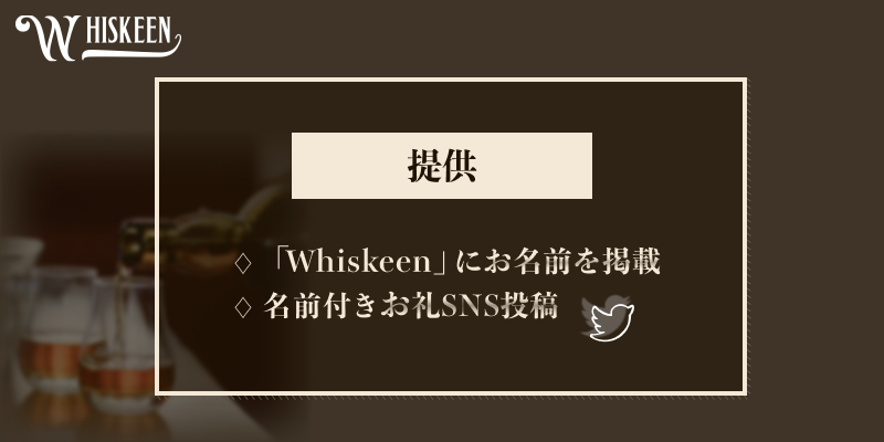 支援者としてお名前を「Whiskeen」に掲載し、SNSで名前付きのお礼メッセージを投稿します。