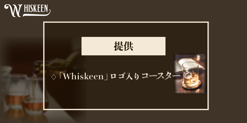 「Whiskeen」ロゴ入りコースターを提供します。
