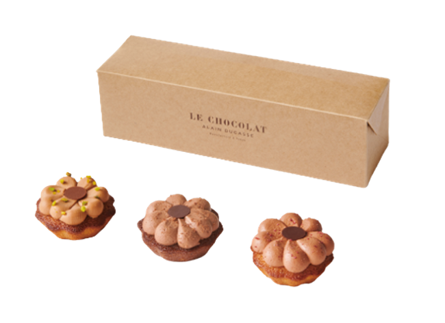 お花型のフィナンシェ生地に、ガナッシュクリームを合わせたプチガト―。ショコラ、ショコラ・フランボワーズ、ショコラ・ピスターシュの3種類の味が楽しめます。