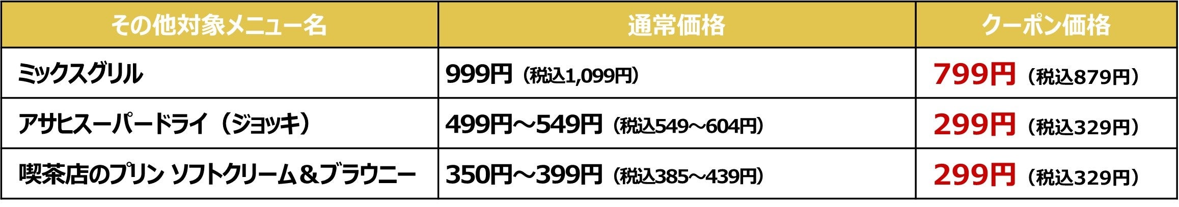 その他4ブランドでも、お得が続々!下記メニュー以外にも、お手頃価格のクーポンが盛りだくさん!