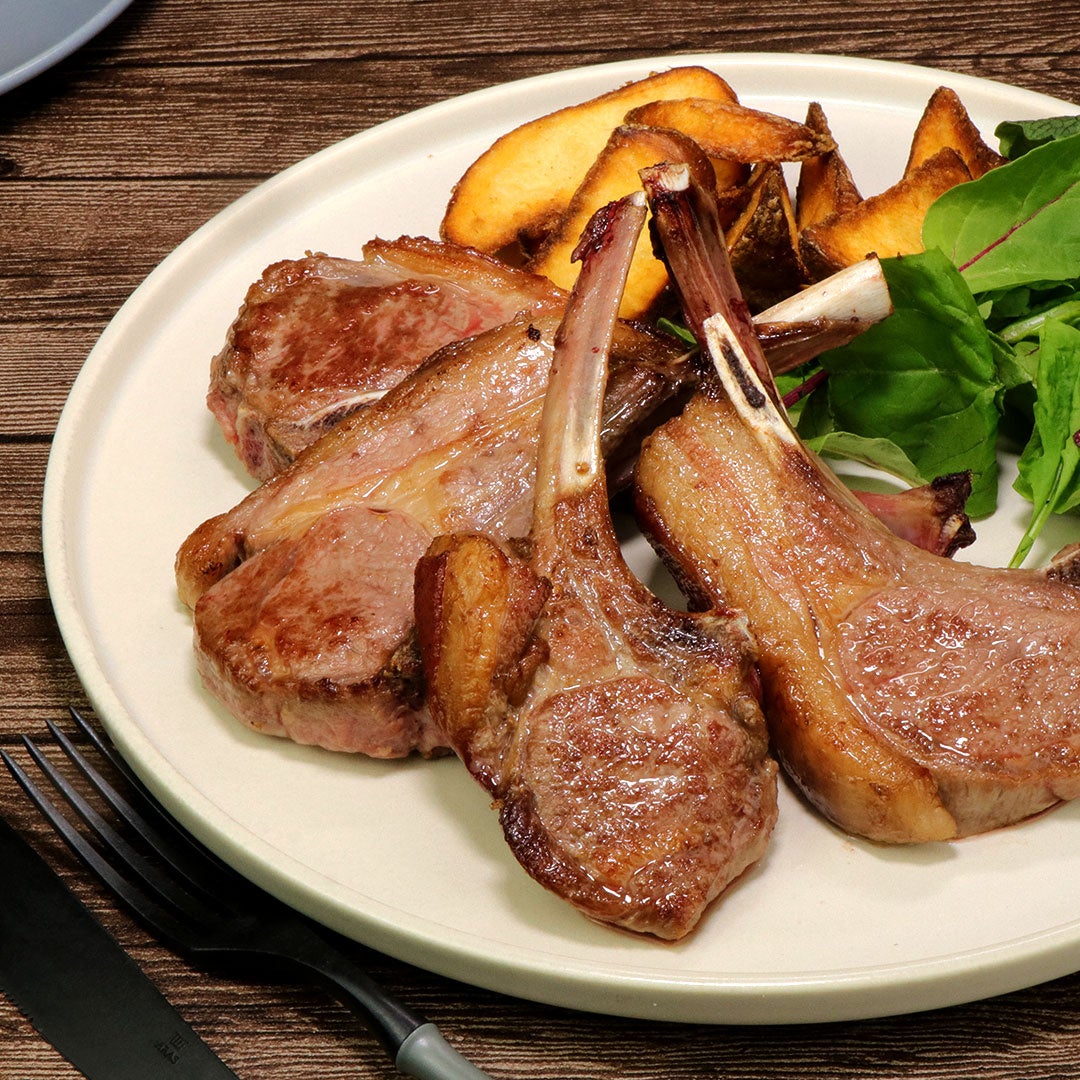 ニュージーランド産仔羊のあばら骨のロース部分のお肉。ご家庭でも本格的な味を楽しめるようにミートガイオリジナルのスパイスミックス付き。通常のラムチョップ約8本分です。