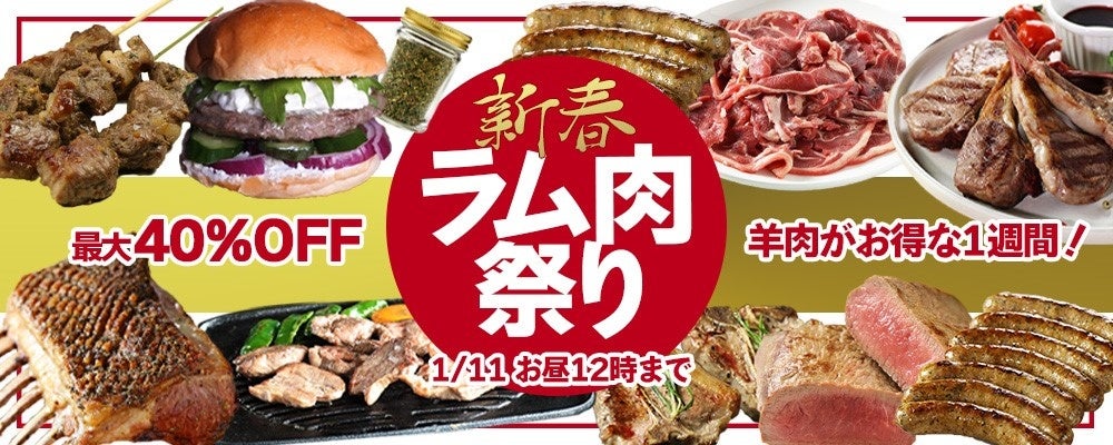 この度、新年のお祝いとして、さらに多くのお客様にラム肉をお楽しみいただけるよう、2023年1月4日(水)12:00から1月11日(水)11:59までの期間限定で、『新春ラム肉祭り』を開催いたします。19商品を通常価格から最大40%のセール価格でご提供をいたします。おすすめは、当店のラム商品の中で最も人気があるニュージーランド産の「ラムチョップ」。その他、2022年9月に新発売された脂身が美味しい「ラムチョップ キャップオン」や焼き肉用のスライス肉、ソーセージなど、様々な部位を利用シーンに合わせてバラエティー豊かにラインナップしています。
