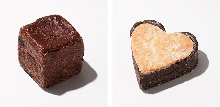 ドライフルーツ入りのココア生地でミルクチョコを包み、パイ生地と合わせてかわいいハート型に。