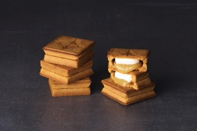 クッキーは和菓子の「はさみ焼き」の技術で焼き上げる事で余分な油分だけが抜け、食感と風味のベストバランスを実現。