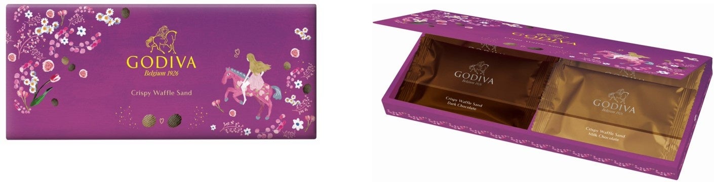 ゴディバの2023年バレンタイン コレクションを代表する「メリーゴーランド ワッフル コレクション」は、ベルギーの代表的なスイーツ「ワッフル」をチョコレートで表現しています。おいしいチョコレートやお菓子を食べたときにめぐる幸せを、メリーゴーランドのモチーフで表現し、パッケージにデザインしました。