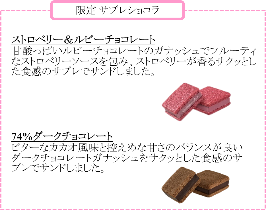 サブレショコラ ストロベリー&ルビーチョコレート(3個入)/972円サブレショコラ ストロベリー&ルビーチョコレート アソートメント(5個入)/1,836円