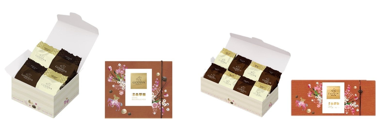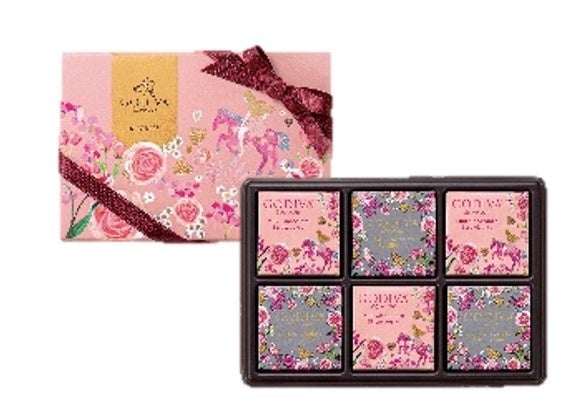 レディ・ゴディバ、フラワー、ハート形のワッフルなど、コレクションを象徴するモチーフを散りばめたパッケージに、「ルビーストロベリームース」などバラエティ豊かなG キューブを詰め合わせました。