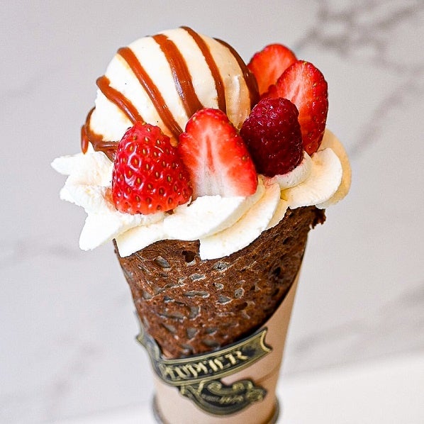 40年以上続くパティスリーでは華やかなガレットが最近SNSでも話題。エシレバター、ココナッツブランマンジュ、赤いフルーツ、キャラメルサレソースを使った、まるでパフェのような道産蕎麦粉100%のガレット。