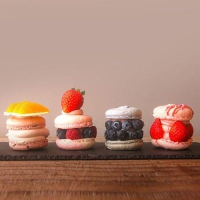 PART2【実演】<札幌市/chubby macaron sapporo>左から:マカロンフレッシュカシスオレンジ 551円、マカロンフレッシュベリー 601円※日本橋三越本店限定、マカロンフレッシュブルーベリー 571円、マカロンフレッシュいちご 571円