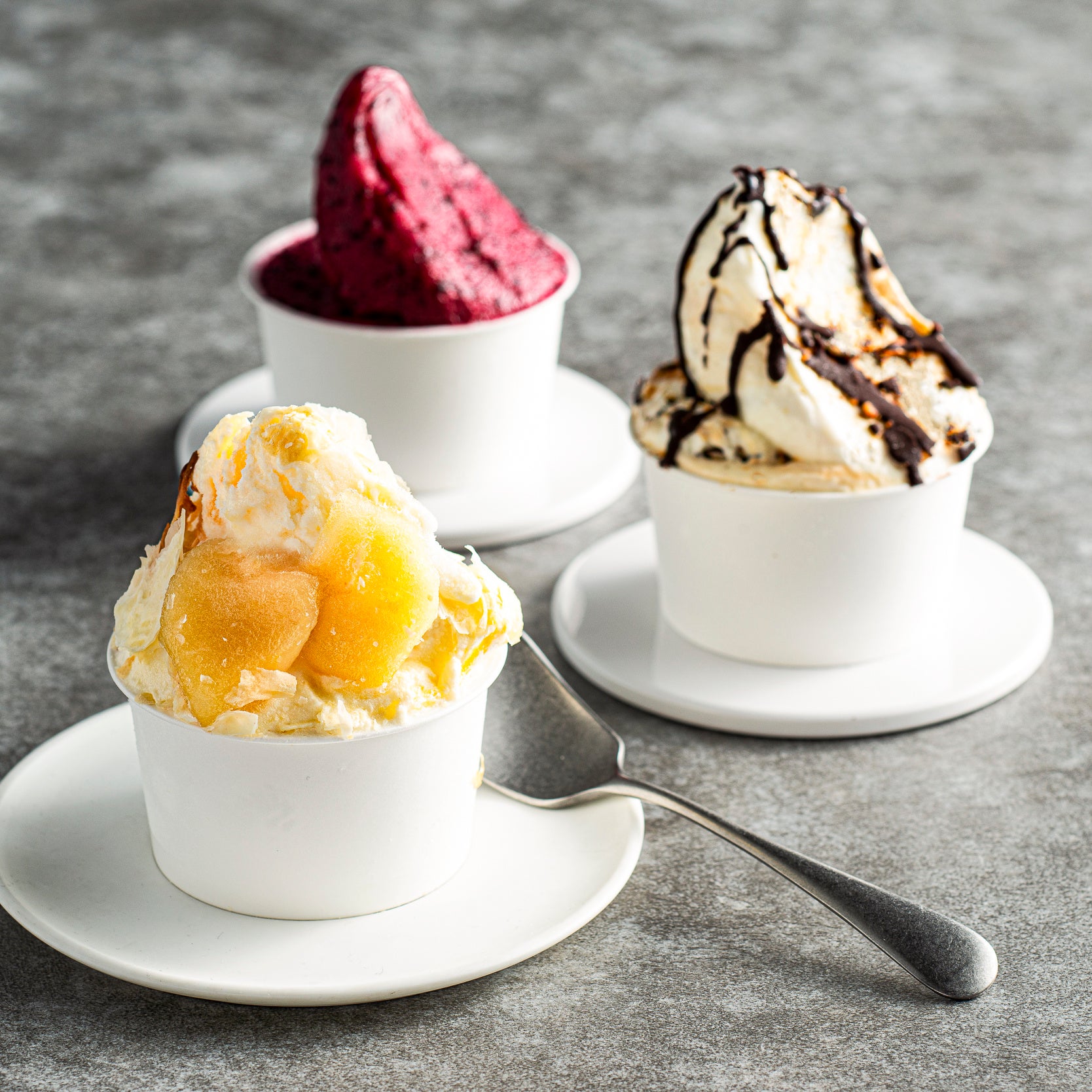 PART2【イートイン】<滝川市/ジェラートレインボーメーカー>アップルパイ・皮まるごとブドウ・チョコチップペポナッツプラリネ 各495円