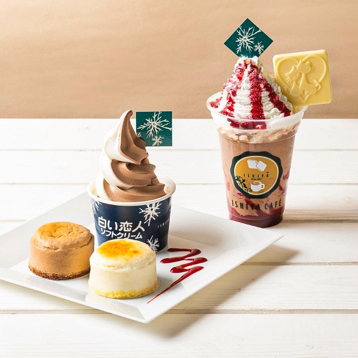 白い恋人のチョコレートと北海道産の生乳を使用したシェイクが登場。人気のソフトクリームと白い恋人のチョコレートを使用した<函館洋菓子スナッフルス>とのコラボオムレットを盛り合わせた一皿は会場先行商品です。