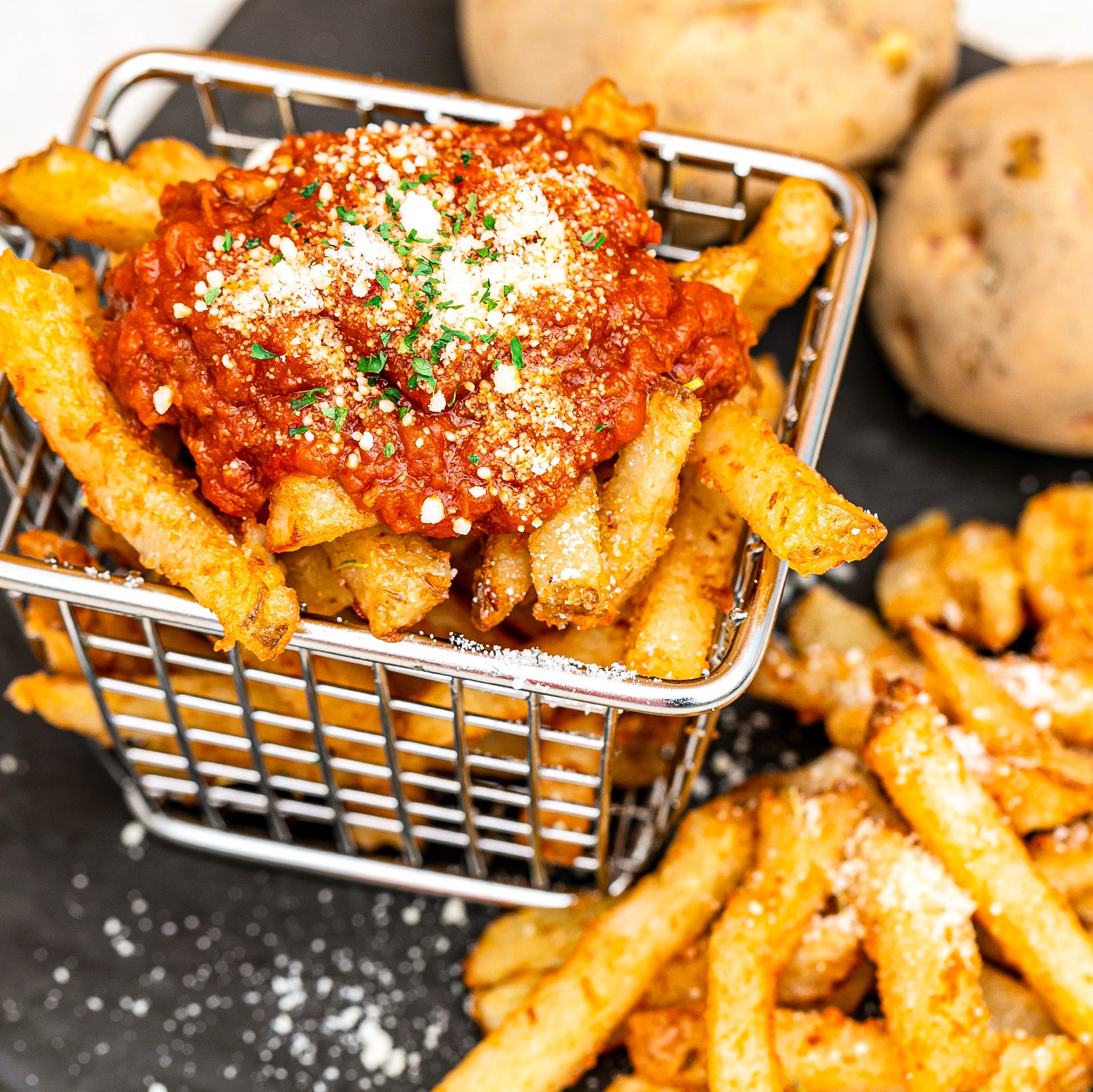 PART2【実演】<美唄市/asombroso!>ハンドカットフライズミートソース 701円、 ゴルゴンゾーラチーズ 701円、 オリジナル 551円、 ガーリックマヨ 701円