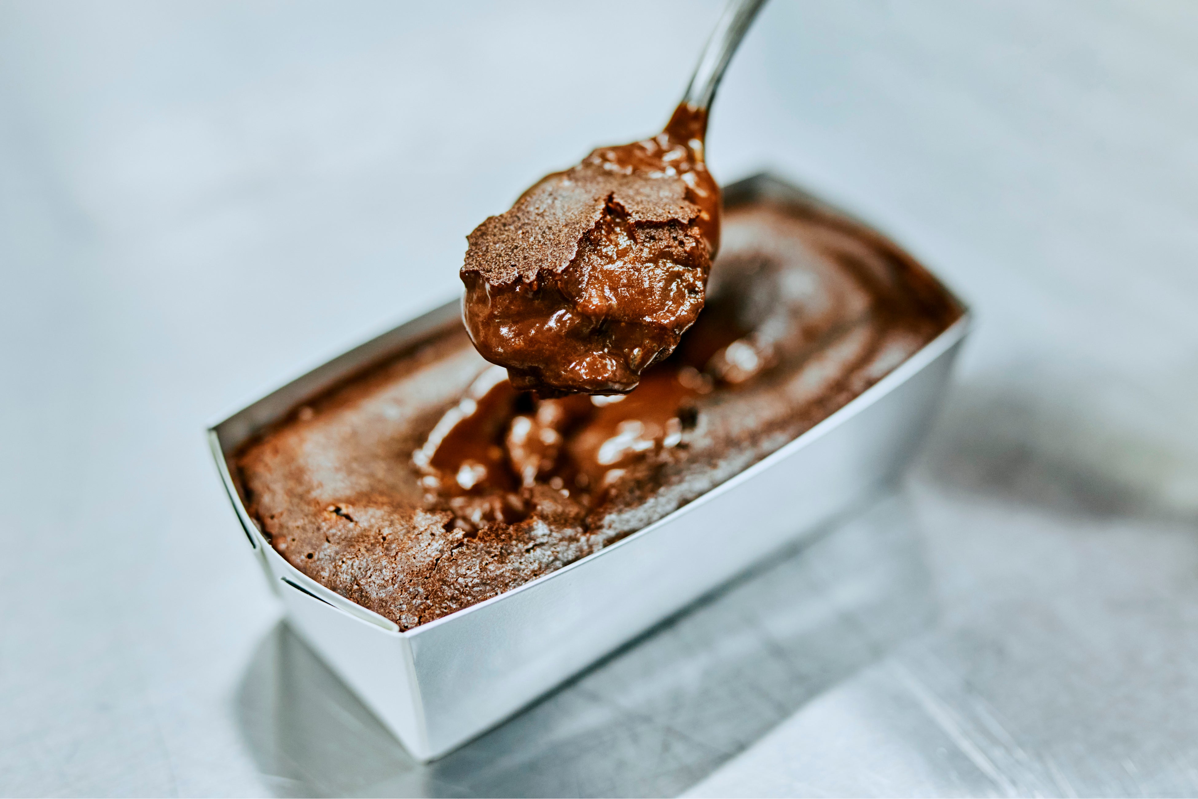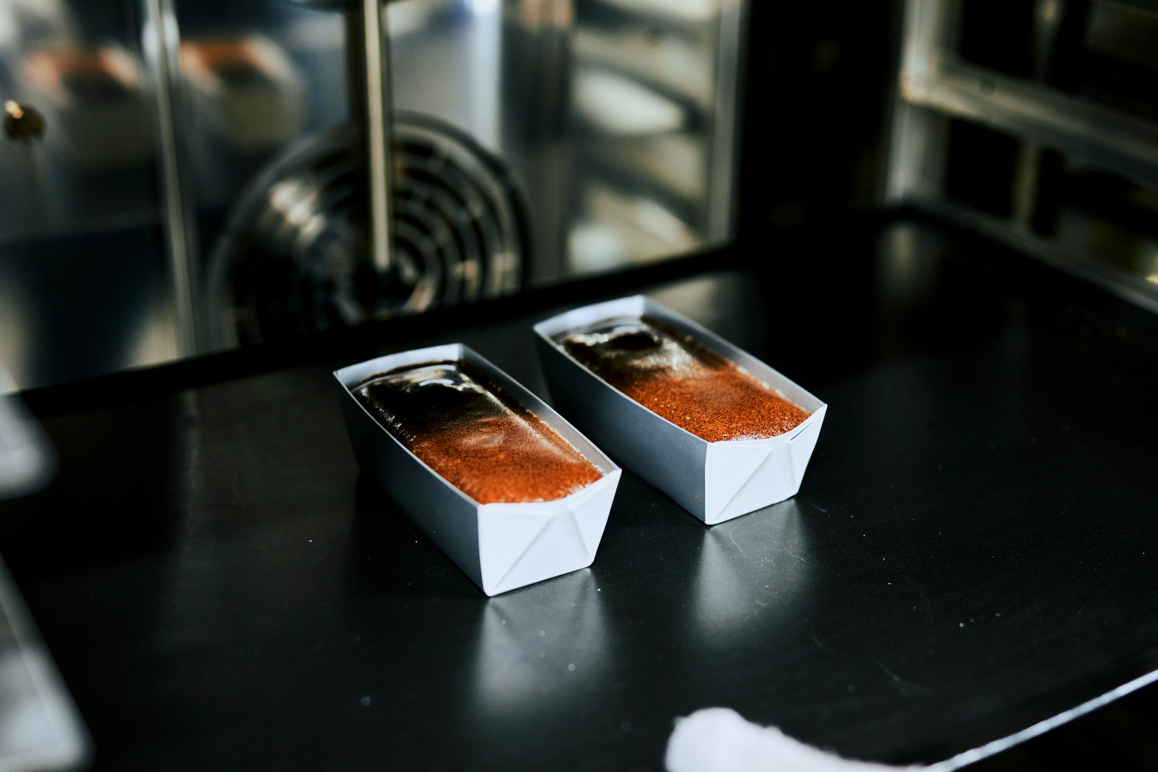 看板品の生ガトーショコラより、待望の出来たて・焼きたてが限定登場します。スプーンですくって食べるほどの、究極の滑らかさと口どけにこだわりました。コロンビアでカカオの栽培から取り組み、発酵―ロースト–調合して作り上げるオリジナルのクーベルチュールの中から、ブラウンシュガーを使用し、口どけが始まると黒糖の様な甘い香りがカカオのフルーツ感と共に楽しめる華やかなチョコレートを選びました。チョコレートの濃厚さと香りを堪能できるよう、小麦粉不使用でバターと卵と合わせレアに焼き上げました。ショコラティエが温度や湿度を踏まえ、焼き加減を調整しながら1本1本手作りで焼き上げて提供します。
