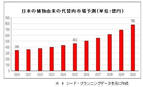 ※4(2020年比)国内代替肉市場規模2020年346億円、2030年780億円 (参照:シード・プランニング)
