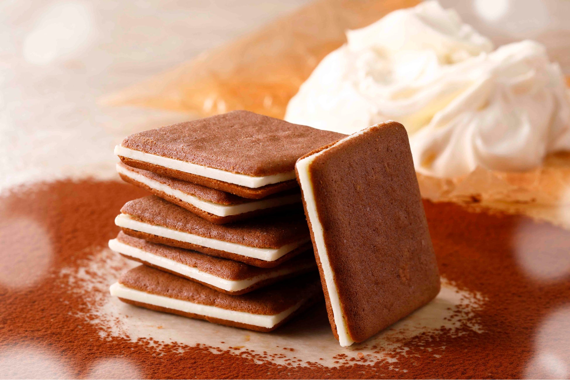 エスプレッソを効かせた生地で、マスカルポーネチーズのチョコレートをサンドしました。