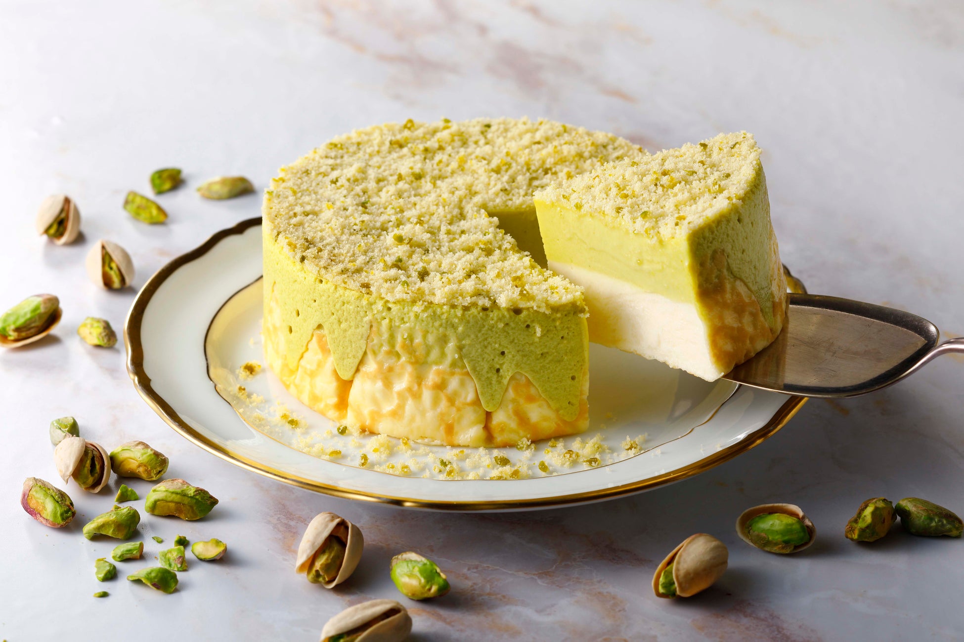 濃厚なピスタチオフロマージュムース、口どけなめらかなフロマージュムースの2層仕立ての生地をクレープで優しく包み込み、ピスタチオを混ぜ込んだクラムで彩り豊かに仕上げました。ピスタチオの濃厚で風味豊かな味わいとクリームチーズのコクが合わさった、味わい深い逸品です。
