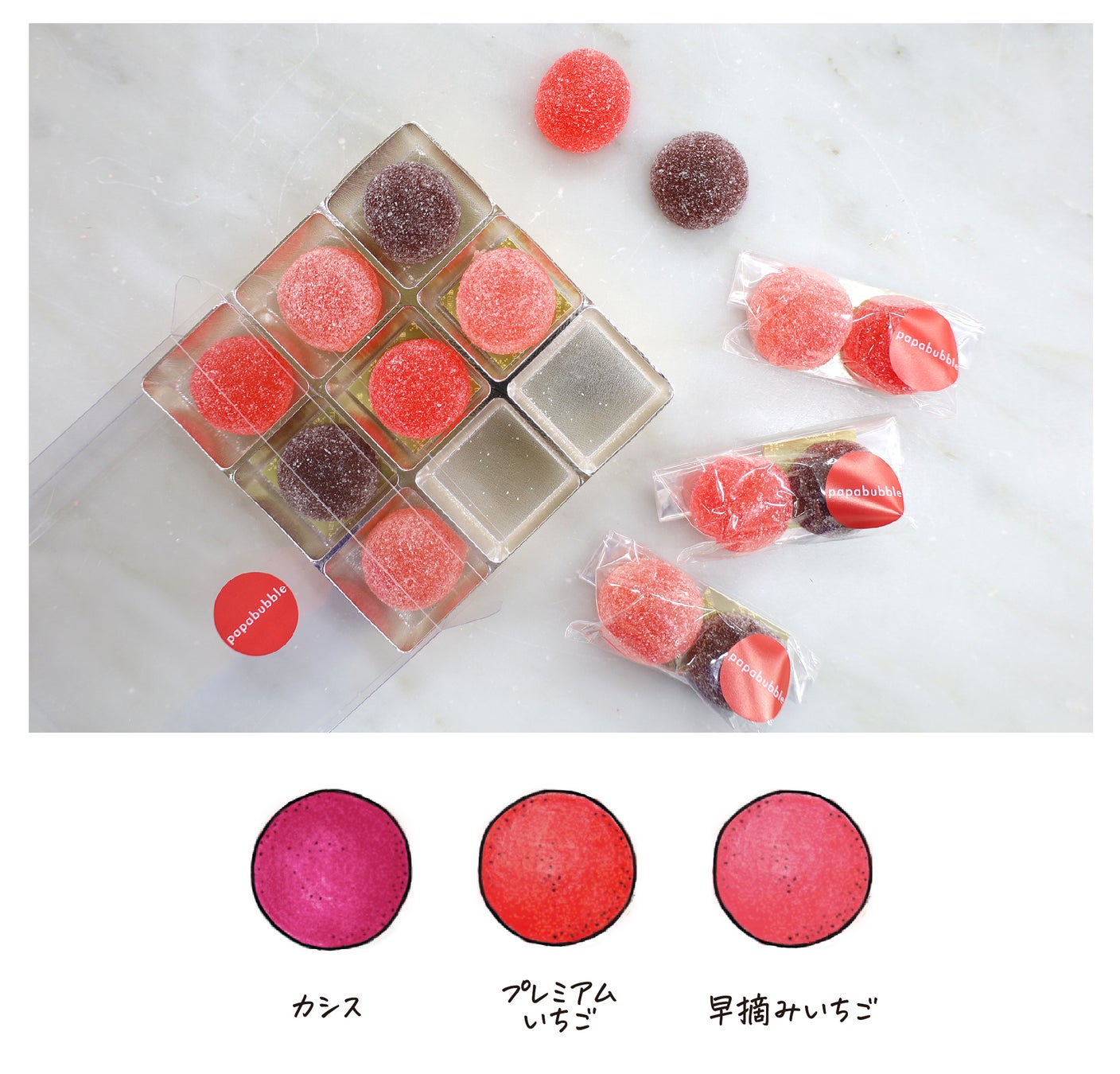 キャンディに次いでファンの多い、パパブブレのバブレッツ(グミ)にも、いちごシリーズが登場します。