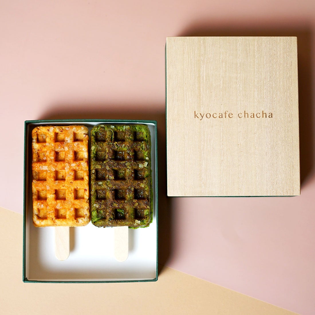 ワンハンドスイーツとして注目されている京ワッフルを展開するkyocafe chachaでは、2023年1月の期間中、「宇治抹茶×ほうじ茶BOX」と「よくばりいちごBOX」を各50箱限定で展開。