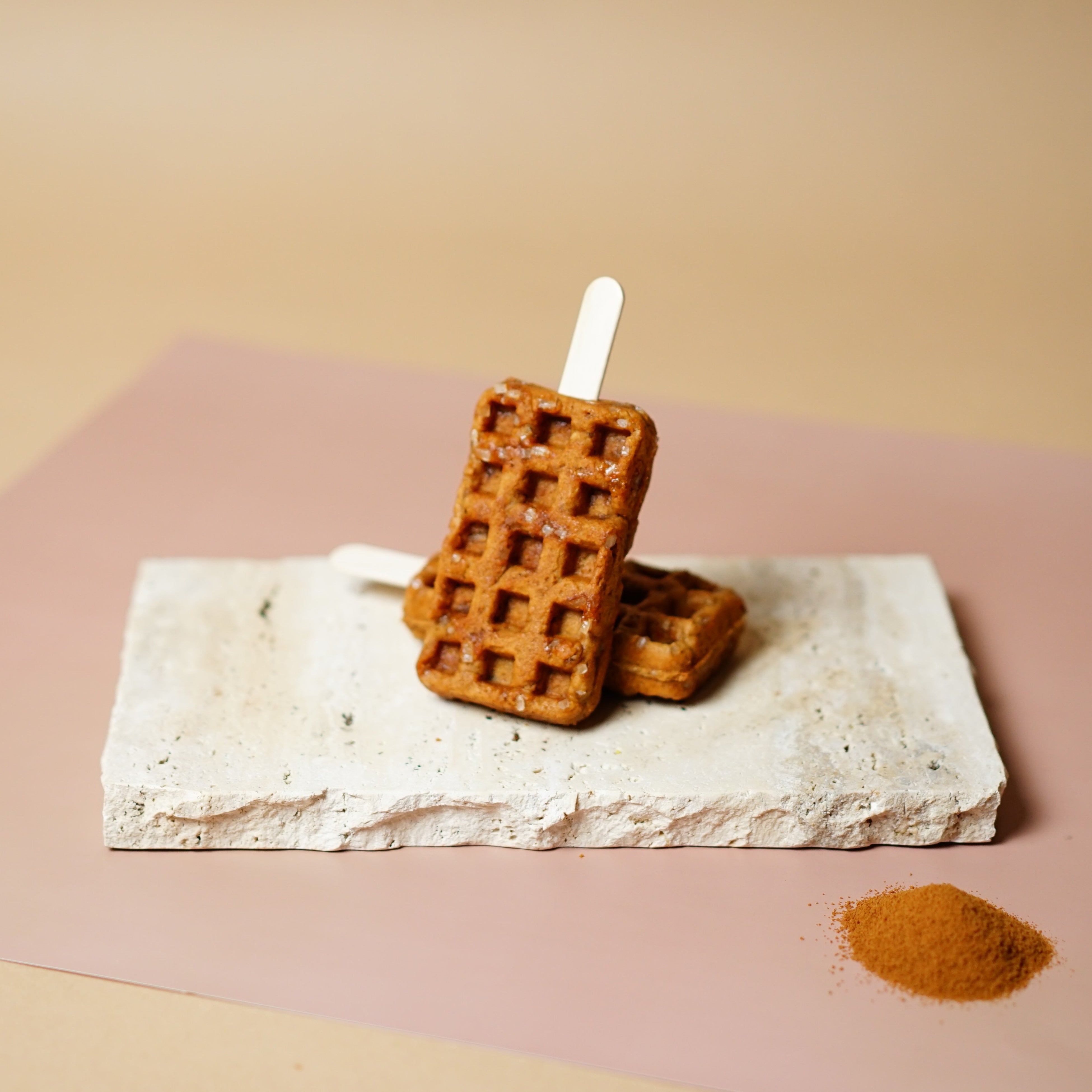 大粒ザラメが入った京ワッフルの生地に、ストロベリーフレークを練り込みました。