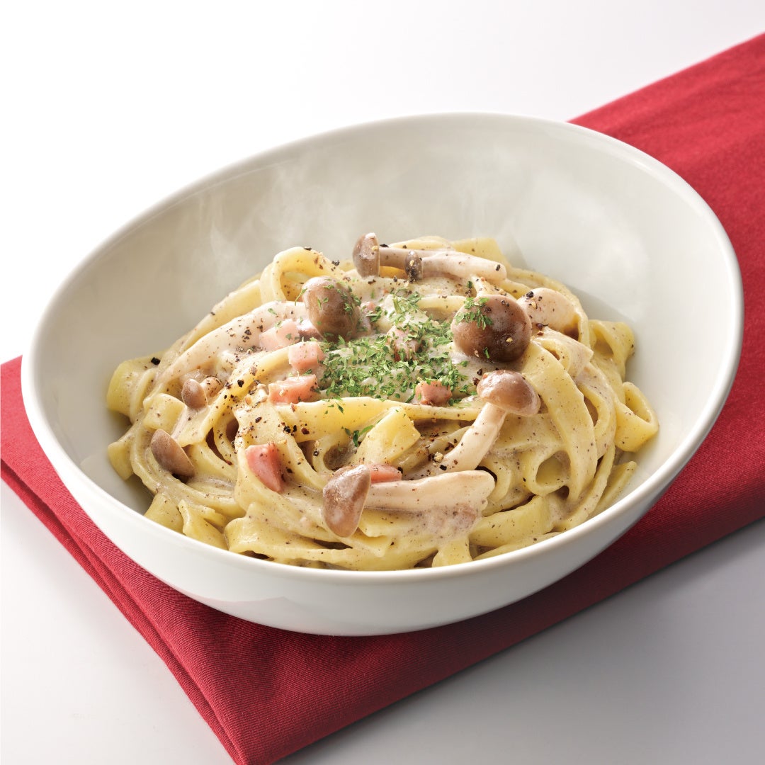 燻製ベーコンときのこの旨みがつまった、寒い冬にぴったりの香りゆたかなクリームソースパスタです。