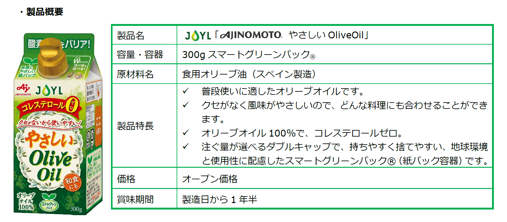 ■新製品:JOYL「AJINOMOTO やさしいOliveOil」