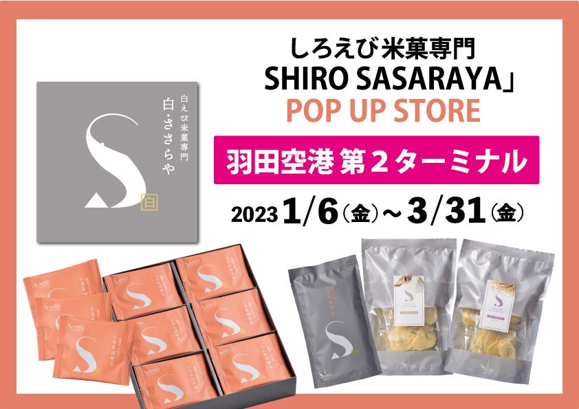 創業99年の老舗米菓メーカー日の出屋製菓産業株式会社(本社:富山県南砺市、代表取締役会長:川合 声一)の新ブランド、しろえび米菓専門「SHIRO SASARAYA」は、羽田空港第2ターミナル2F出発ロビー 時計台4番付近にて1月6日(金)〜3月31日(金)の3ヵ月間出店いたします。2023年の始まりに新しい米菓をお楽しみください。