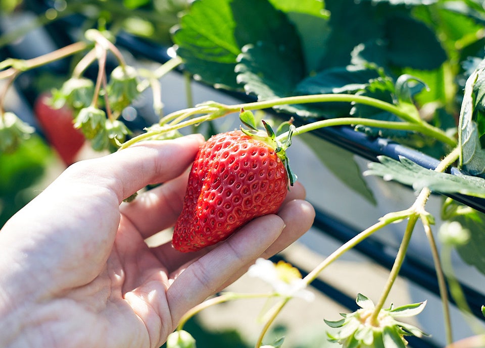 2018年から大阪府茨木市でいちごの生産に取り組む「いちご農園 ミライバナ」。同農園のいちごは、IOT技術を用い、極限まで農薬の使用を減らす栽培方法で、農林水産省の「特別栽培農産物」に認定されています。昨年、同農園とコラボレーションして、鮮度や品質にこだわったいちごを使用したスイーツなどを販売し、大変ご好評いただきました。