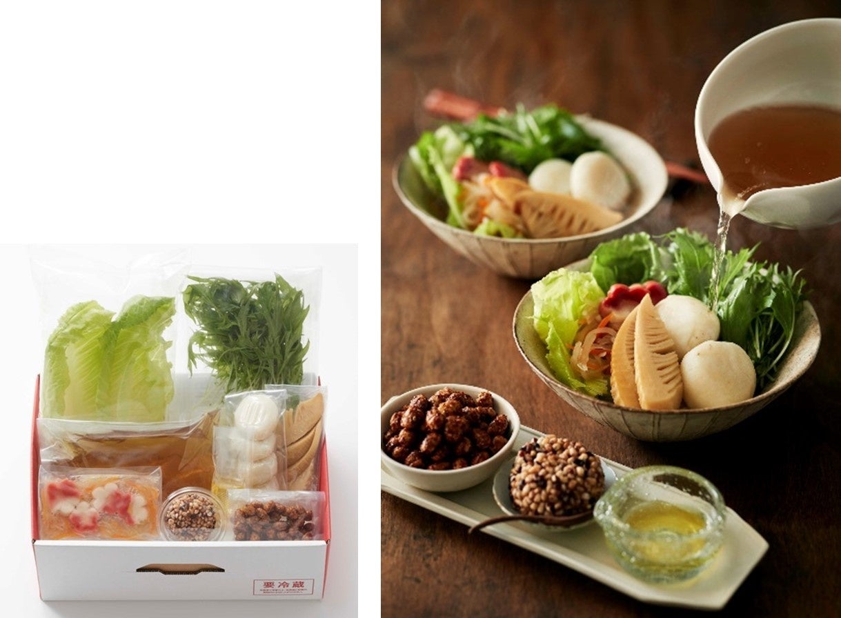 これらの具材に、温めた精進だしを合わせてお召し上がりいただきます。