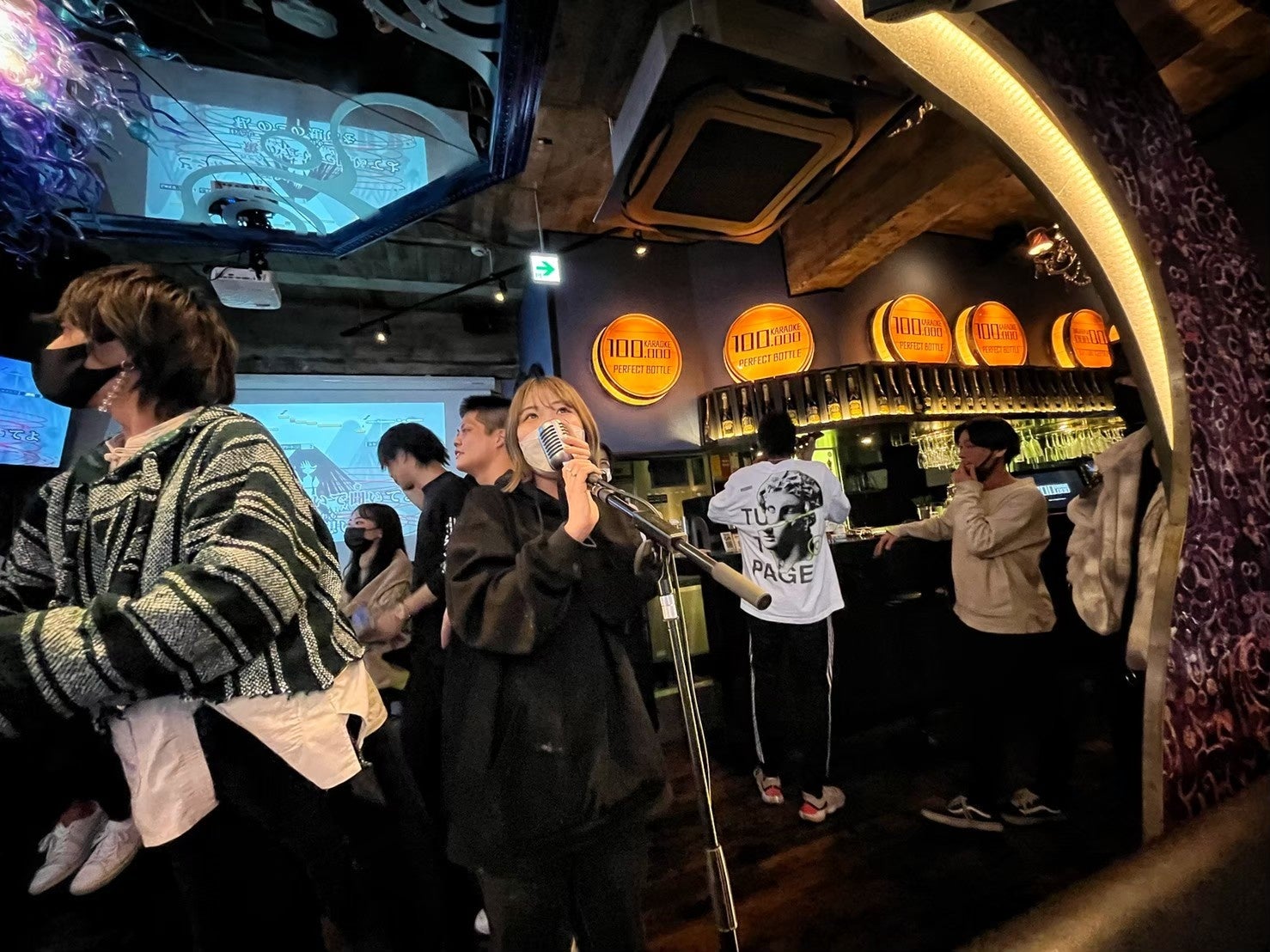 セクションエイトが運営する新時代のコミュニティーカラオケBARで「歌」を通じてグループ同士の交流やスタッフとの親睦を深めていきやがて一つのグループとして繋がっていく新感覚のBARです。広々としたワンフロアーのラウンジ空間で、音響機器品質と大型モニターにこだわり圧倒的な歌い心地と聴き心地を演出しています。代表的なゲームコンテンツである「ハンドレッドチャレンジ」は「AIカラオケ採点100点満点で金券10万円やご利用料金が一生半額になるパーフェクト会員の称号」をもらえる人気コンテンツとなっています。基本システムは「歌い放題」「飲み放題」「ダーツ投げ放題」となっていて、大学生から社会人、音楽に精通するプロのミュージシャンやアイドル、カップルやお一人様まで広い層に支持を受けております。
