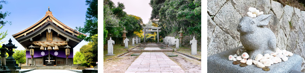 白兎神社は、日本最古書物「古事記」の一節で最古の恋物語である神話「因幡の白兎」に登場する白兎神が祀られています。白兎神は縁結びの神様であるため、恋愛のパワースポットとなっており、多くの恋人やカップルが訪れています。また、縁結びだけでなく、神話のストーリーから皮膚や傷の平癒にもご利益があるとされています。