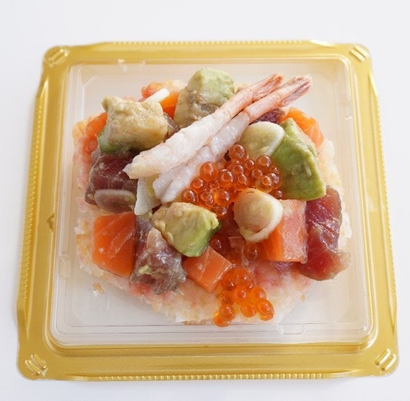 商品特徴と商品名の由来:油でサッと揚げた米の上に鮪、サーモン、アボガド、甘えび、いくらをトッピングし、華やかで楽しい見た目が演出され、隠し味としてイチゴソースと梨ソース、エシャレットが使われており、さわやかな風味に仕上がっています。地元食材としては、小名浜港水揚げ福島丸のバチマグロ、米にはIwaki Laikiを使用しています。商品名は、華やかで楽しい見た目がタルトに似ていることからサンシャイン米タルトになりました。