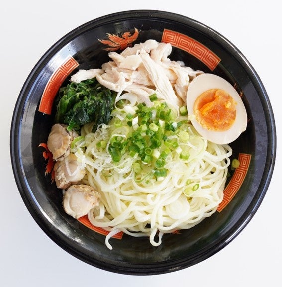 商品特徴と商品名の由来:具材には、ベビーホタテ、ほうれん草、蒸し鶏、煮卵、青ねぎを使用し、麺は無かんすいの小麦麺を使用しました。無かんすいの小麦麺は、中華麺特有のにおいがせず、小麦本来の風味が楽しめ、スープの味やうまみを邪魔しない特徴から、あっさりとした塩味に仕上げました。地元食材としては、いわき産ねぎを使用しています。商品名は開発コンセプトをそのまま商品名に採⽤しました。