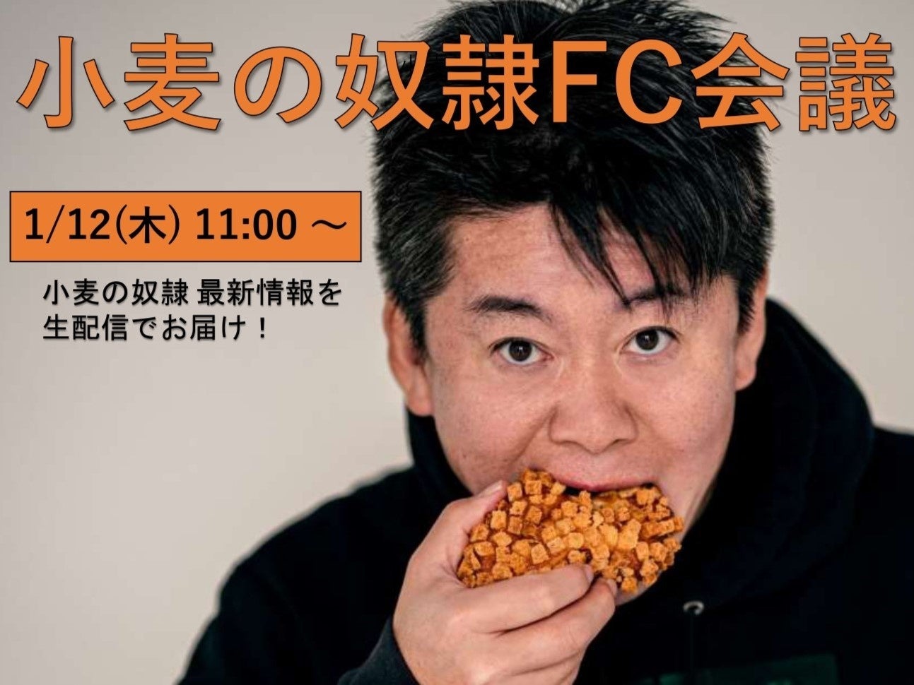 1月12日(木)11:00から、YouTube【ホリエモンチャンネル】にて「小麦の奴隷FC会議」をライブ配信します。