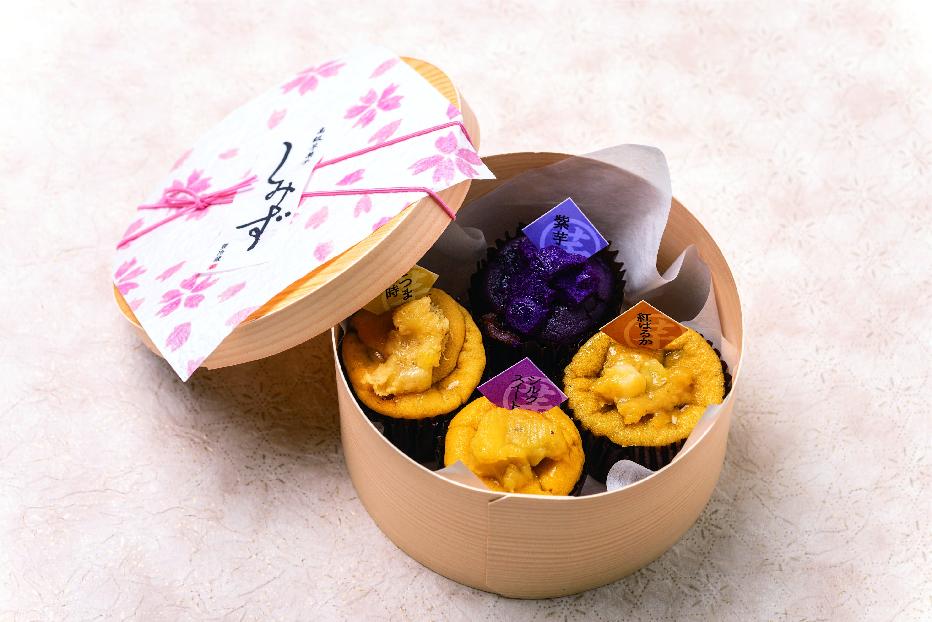 2018年 4月 4日に大阪市北区に1号店をオープン。当店は鹿児島を中心とした契約農家から、畑・気候・生産者によって常に味わいが変化するさつま芋を、プロの芋問屋がしみずのスイーツに見合った品質を目利きし厳選して直送しているため、その年、その時一番のトップクラスのさつま芋だけを使用しています。日本で古くから愛されているさつまいもだからこそ、「親しみのある味わいに高級感を」をモットーに、さつまいもが持つ本来のおいしさ、品種により異なるおいしさ、製法によるおいしさ、すべてのおいしさにこだわったお菓子を作っています。40日以上の熟成期間を経た厳選さつまいもを鹿児島より直送し、芋パフェや和スイートポテト、焼き芋ブリュレや熟成大学芋など、老若男女問わず沢山のお客様から愛されるお芋スイーツをご提供しています。